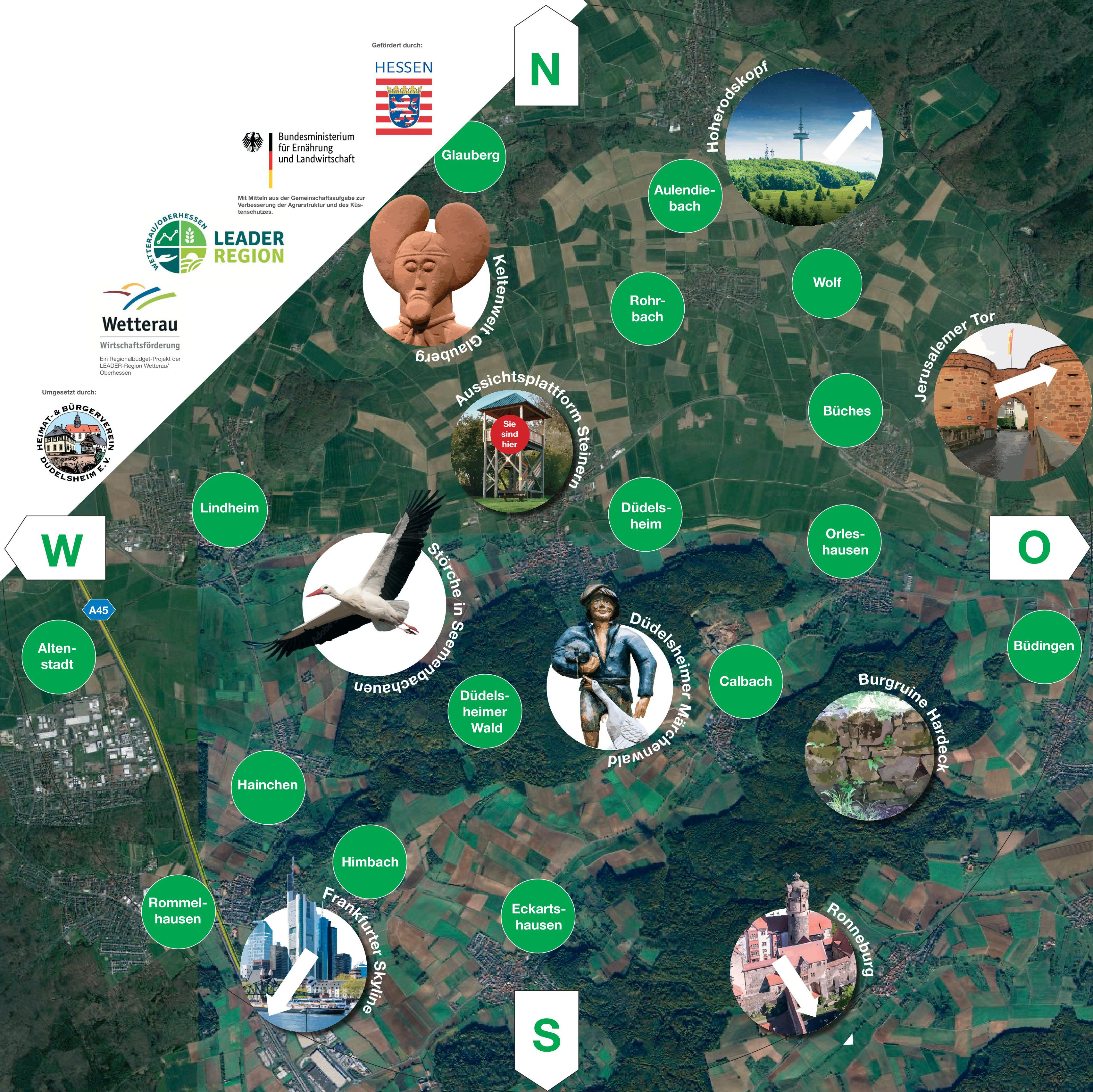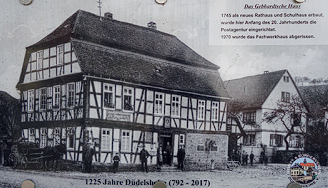 An verschiedenen Stellen in Düdelsheim wurden im Laufe der Jahre Infotafeln zur Historie installiert.